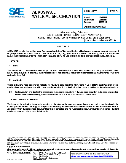 This specification covers an aluminum alloy in the form of extruded bars, rods, wire, profiles, and tubing up to 2.999 inches, incl (76.17 mm, incl) in thickness, nominal diameter or wall thickness with cross-sectional area 25 in2 (161 cm2) and under (see 8.5).