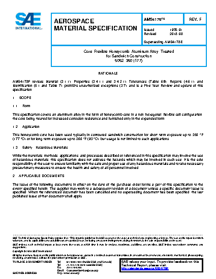 This specification covers an aluminum alloy in the form of honeycomb core in a non-hexagonal, flexible cell configuration, the core being treated for increased corrosion resistance and furnished only in the expanded form.