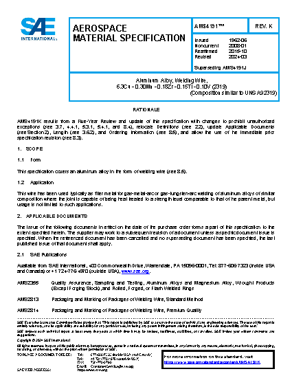 This specification covers an aluminum alloy in the form of welding wire.