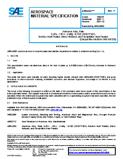 This specification covers an aluminum alloy in the form of plate up to 5.500 inches (139.70 mm), inclusive in thickness (See 8.4).