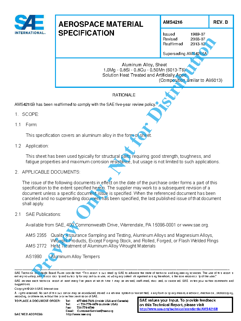 Aluminum Alloy, Sheet 1.0Mg - 0.8Si - 0.8Cu - 0.50Mn (6013-T6) Solution Heat Treated and Artificially Aged