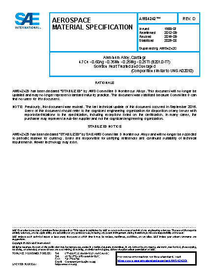 SAE AMS 4242C:2015-09-01