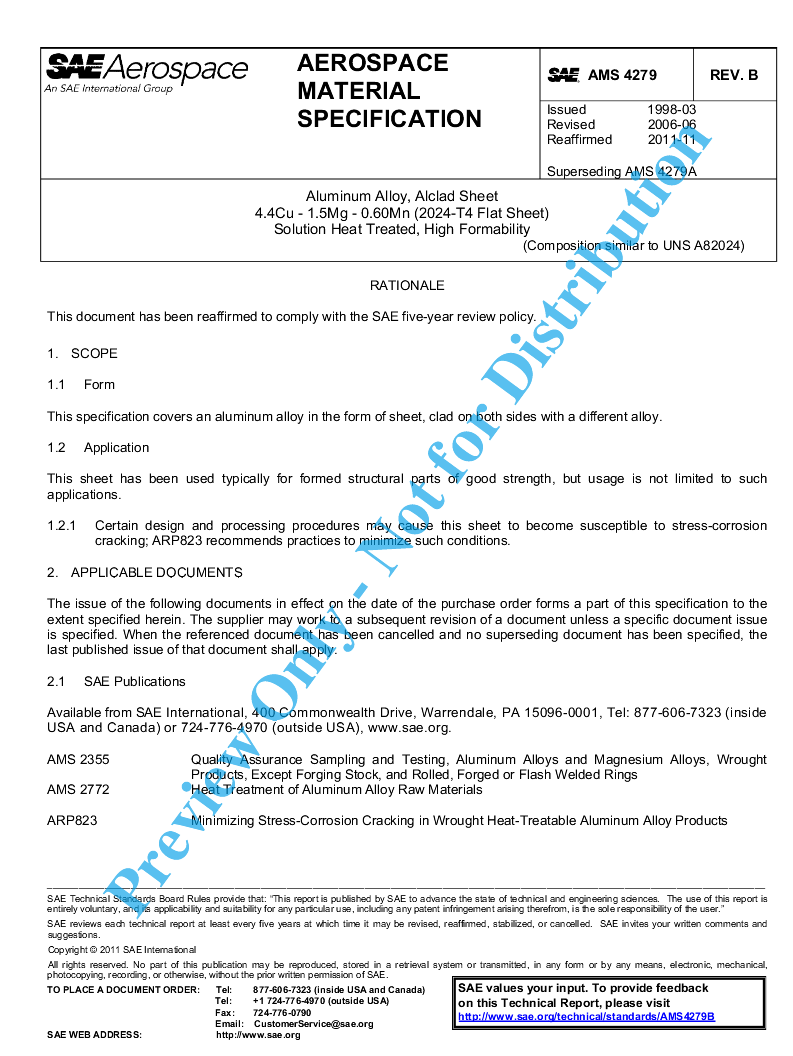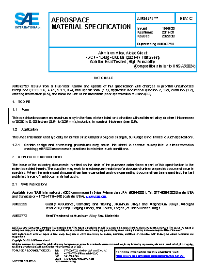 Aluminum Alloy, Alclad Sheet 4.4Cu - 1.5Mg - 0.60Mn (2024-T4 Flat Sheet) Solution Heat Treated, High Formability