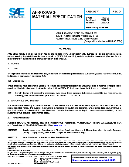 Aluminum Alloy, Alclad Sheet and Plate 4.3Cu - 1.4Mg - 0.60Mn (Alclad 2524-T3) Solution Heat Treated and Cold Worked