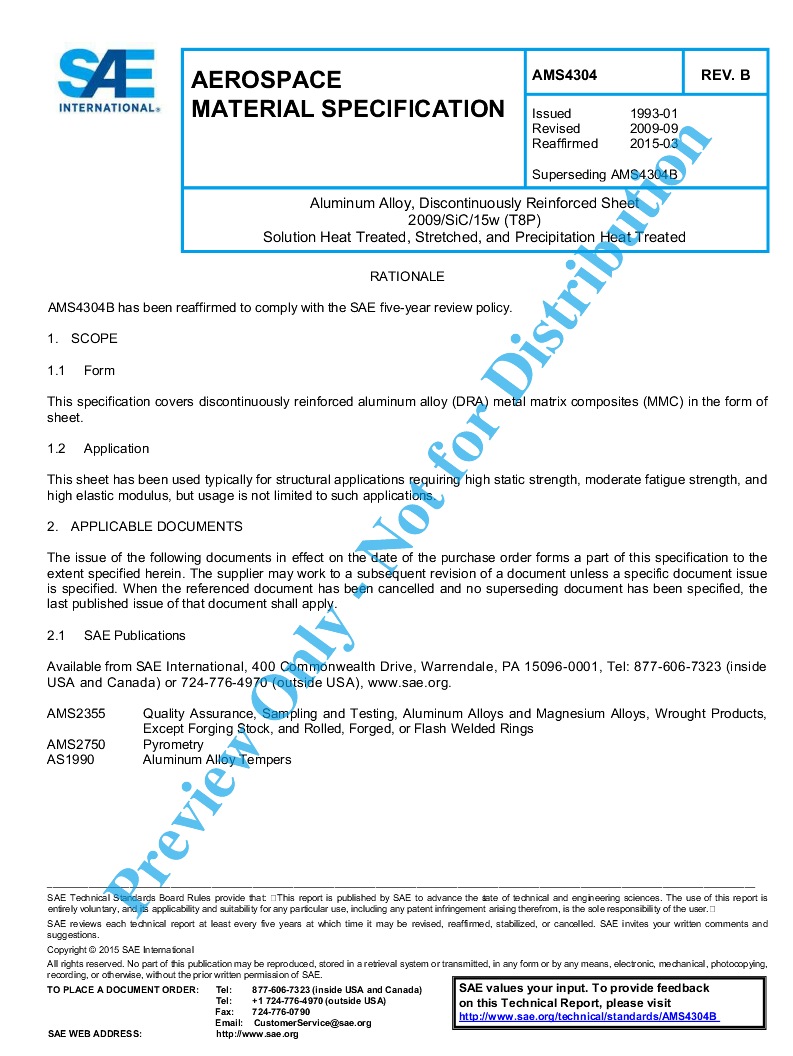 Aluminum Alloy, Discontinuously Reinforced Sheet 2009/SiC/15w (T8P) Solution Heat Treated, Stretched, and Precipitation Heat Treated
