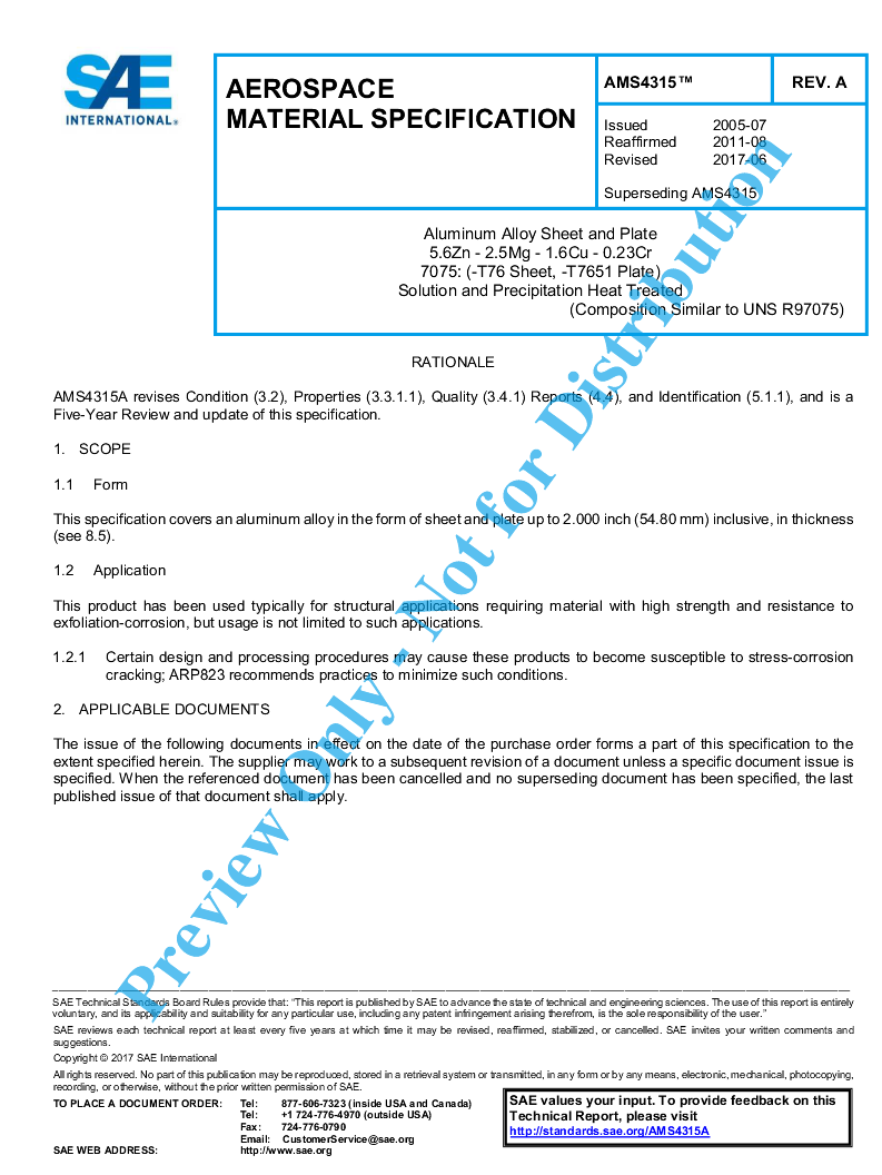 Aluminum Alloy Sheet and Plate 5.6Zn - 2.5Mg - 1.6Cu - 0.23Cr 7075: (-T76 Sheet, -T7651 Plate) Solution and Precipitation Heat Treated