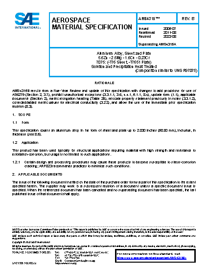 This specification covers an aluminum alloy in the form of sheet and plate up to 2.000 inch (54.80 mm) inclusive, in thickness (see 8.5).