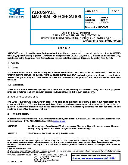 This specification covers an aluminum alloy in the form of extruded bars, rods, wire, profiles 5.000 inches (127.00 mm) and under in nominal diameter or thickness and 32 in2 (206 cm2) and under in cross-sectional area, and tubing 3.000 inches (76.20 mm) and under in wall thickness and 20 in2 (129 cm2) and under in cross-sectional area (see 8.5).