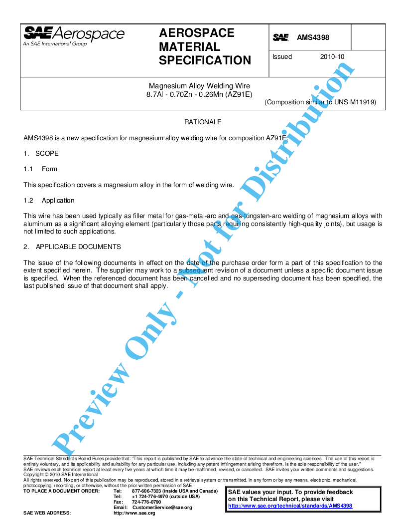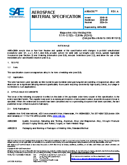 This specification covers a magnesium alloy in the form of welding wire.