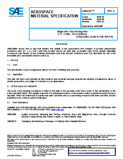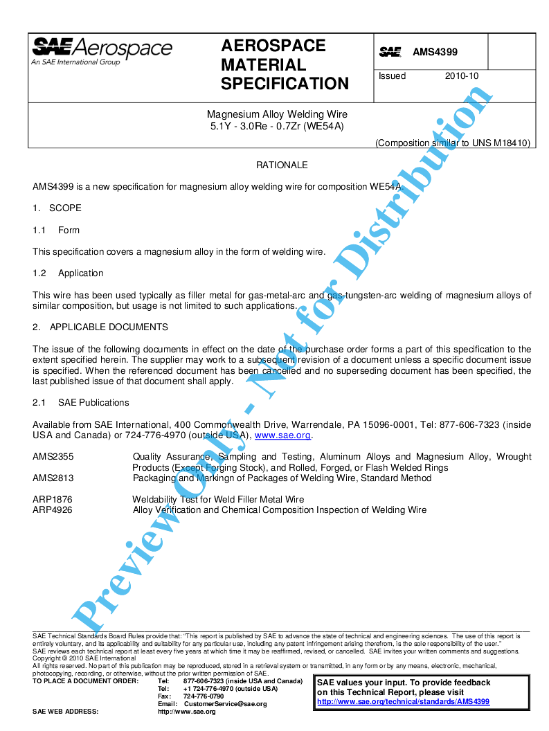 This specification covers a magnesium alloy in the form of welding wire.