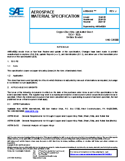 This specification covers a copper-zinc alloy (brass) in the form of laminated sheet.