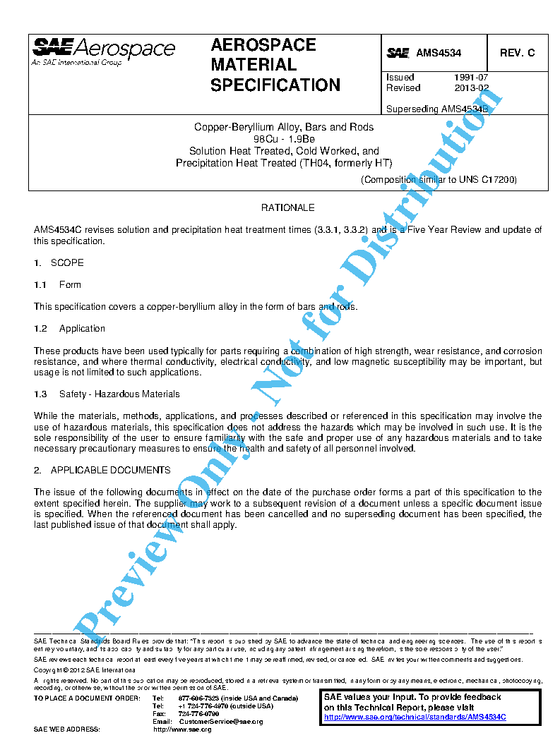 AMS4534C revises solution and precipitation heat treatment times (3.3.1, 3.3.2) and is a Five Year Review and update of this specification.