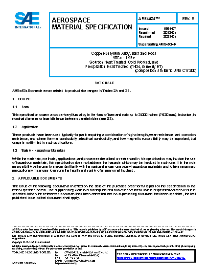 This specification covers a copper-beryllium alloy in the form of bars and rods up to 3.000 inches (76.20 mm), inclusive, in nominal diameter or least distance between parallel sides (see 8.7).