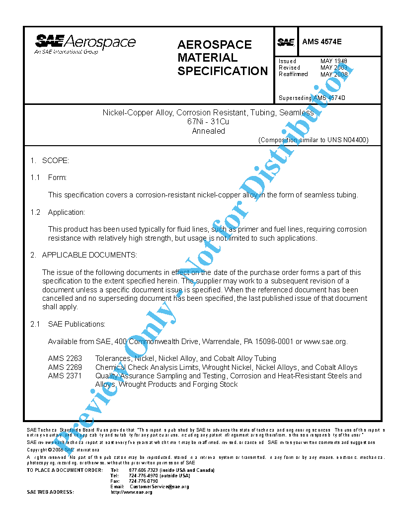 This specification covers a corrosion-resistant nickel-copper alloy in the form of seamless tubing.