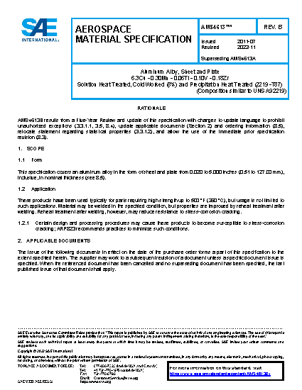Aluminum Alloy, Sheet and Plate 6.3Cu - 0.30Mn - 0.06Ti - 0.10V - 0.18Zr Solution Heat Treated, Cold Worked (8%) and Precipitation Heat Treated (2219 -T87)