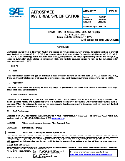 This specification covers one type of aluminum silicon bronze in the form of rods and bars up to 3.00 inches, incl (76.2 mm, incl), in nominal diameter or distance between parallel sides, and forgings and forging stock of any size (see 8.4).
