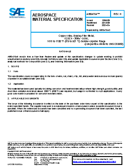 SAE AMS 4764F:2013-09-26