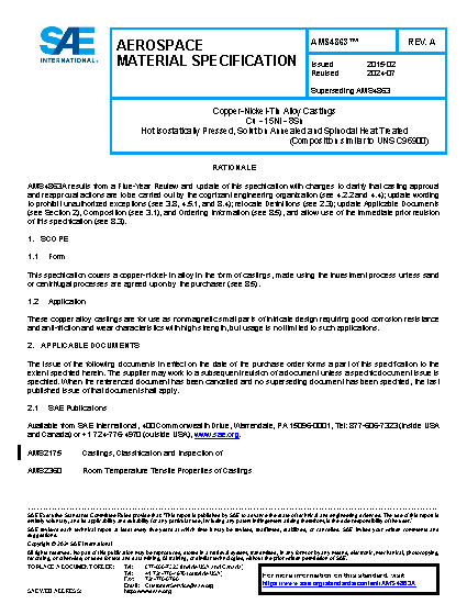 This specification covers a copper-nickel-tin alloy in the form of castings, made using the investment process unless sand or centrifugal processes are agreed upon by the purchaser.