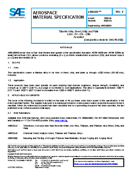 This specification covers a titanium alloy in the form of sheet, strip, and plate up through 4.000 inches (101.60 mm), inclusive.