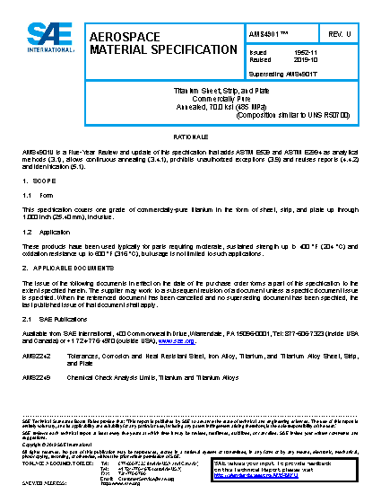 This specification covers one grade of commercially-pure titanium in the form of sheet, strip, and plate up through 1.000 inch (25.40 mm), inclusive.