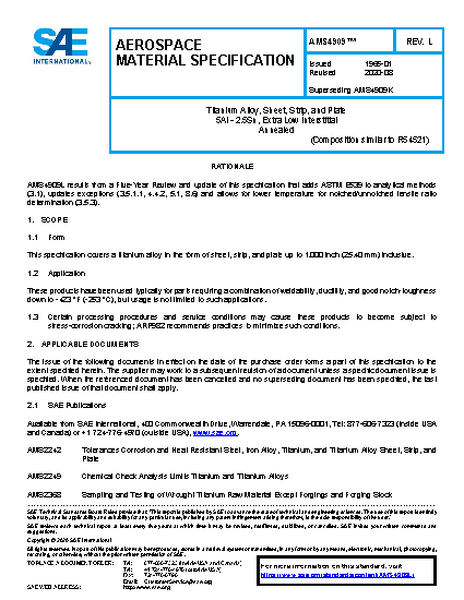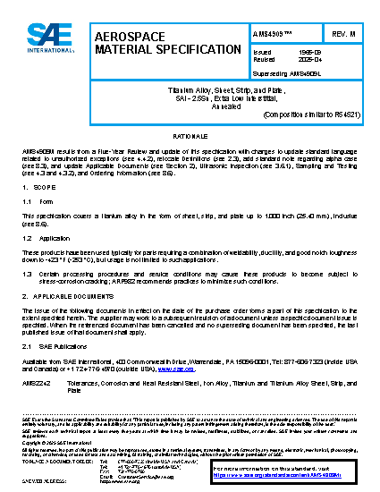 Titanium Alloy, Sheet, Strip, and Plate 5Al - 2.5Sn, Extra Low Interstitial Annealed