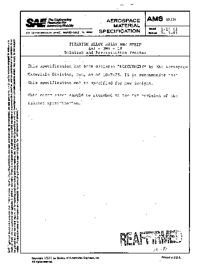 This specification has been "CANCELLED" by the Aerospace Materials Division, SAE, as of December, 1991.