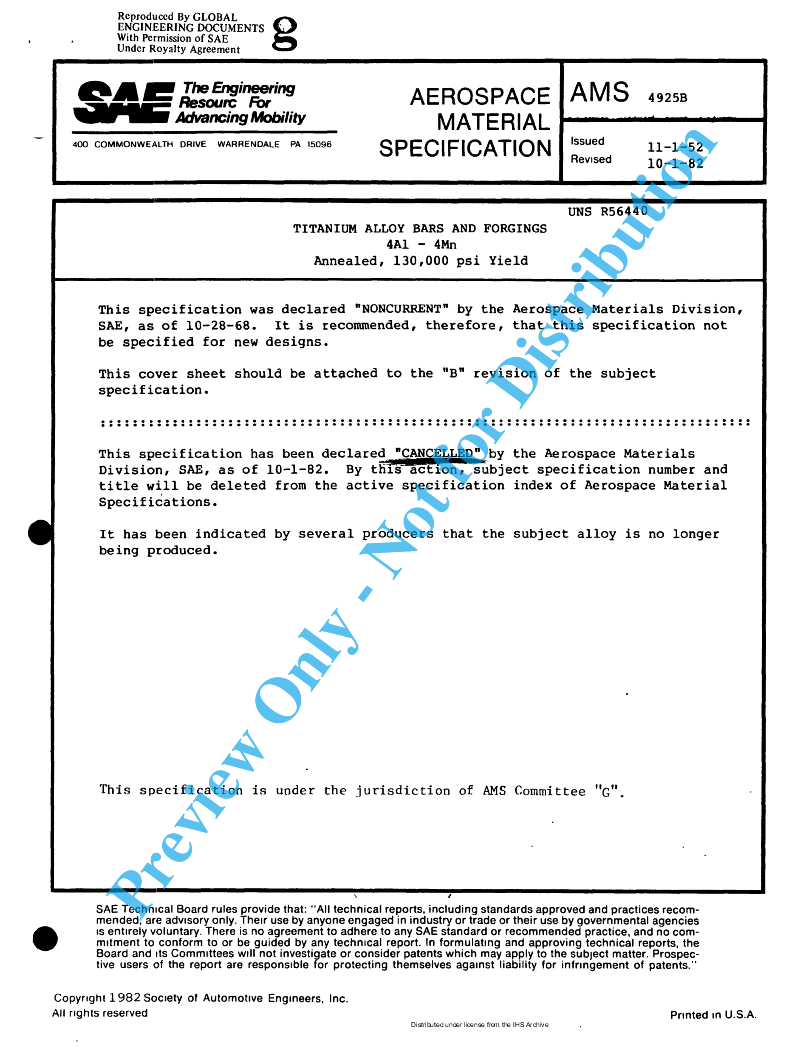 SAE AMS 4925B:1982-01-01