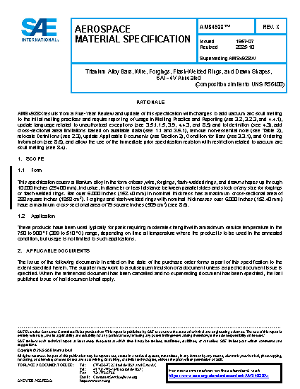 This specification covers a titanium alloy in the form of bars, wire, forgings, flash welded rings, drawn shapes, and stock for forging or flash welded rings.