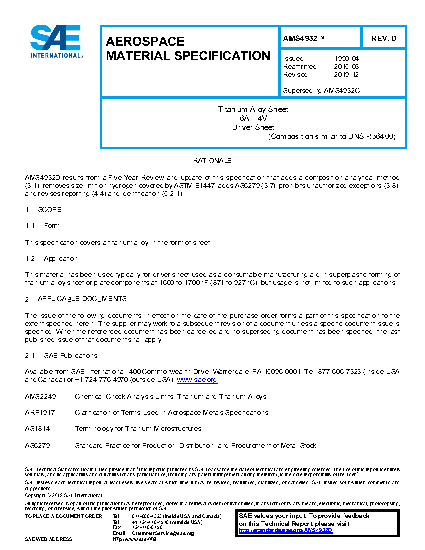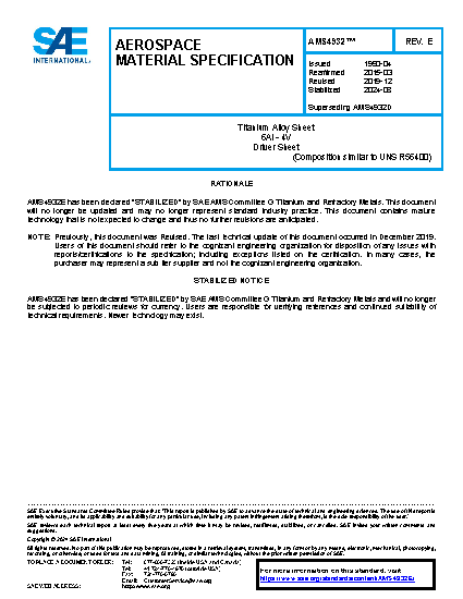 This specification covers a titanium alloy in the form of sheet.