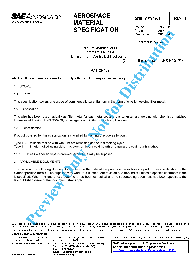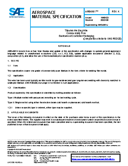 This specification covers one grade of commercially pure titanium in the form of wire for welding filler metal.