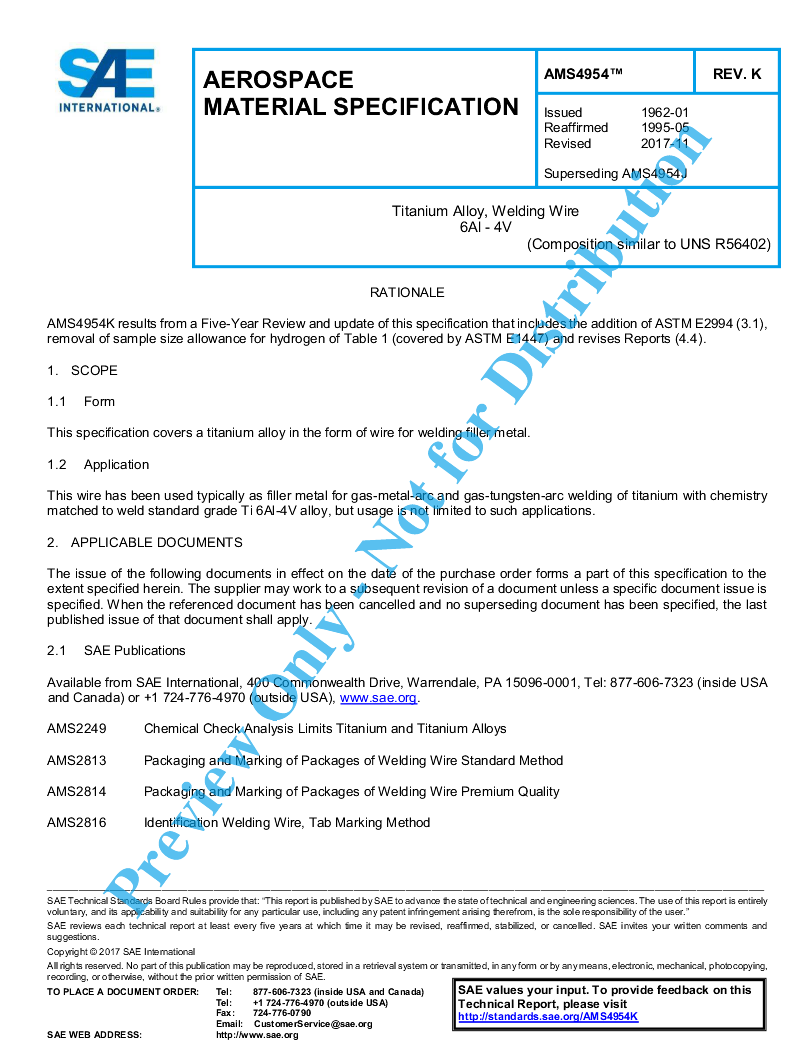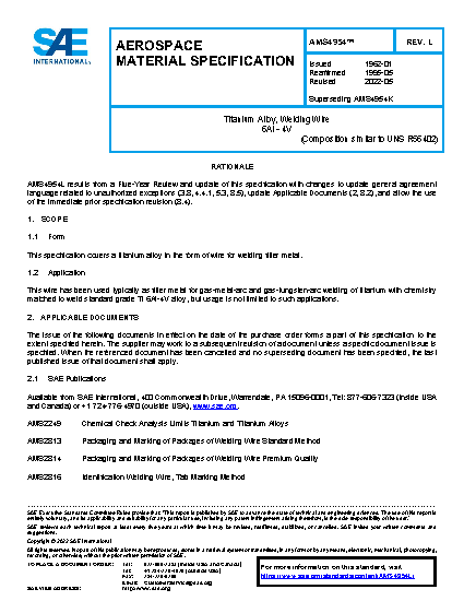This specification covers a titanium alloy in the form of wire for welding filler metal.