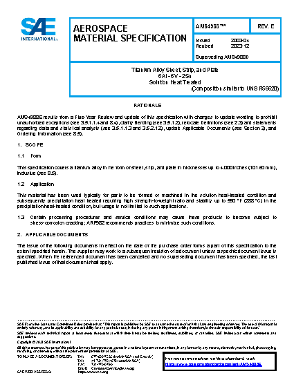 Titanium Alloy Sheet, Strip, and Plate 6Al - 6V - 2Sn Solution Heat Treated