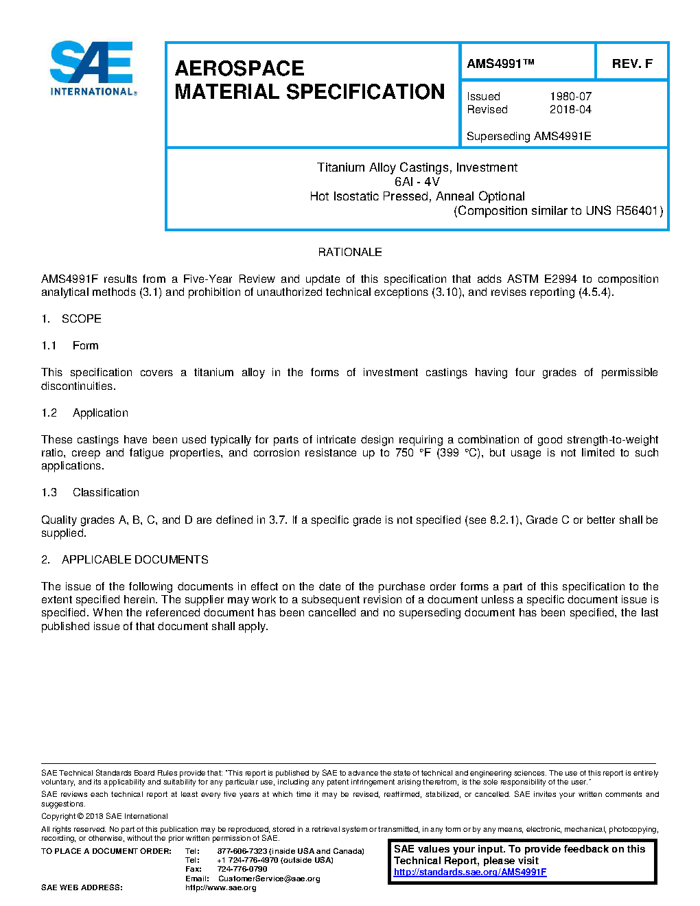 SAE AMS 4991F:2018-04-28