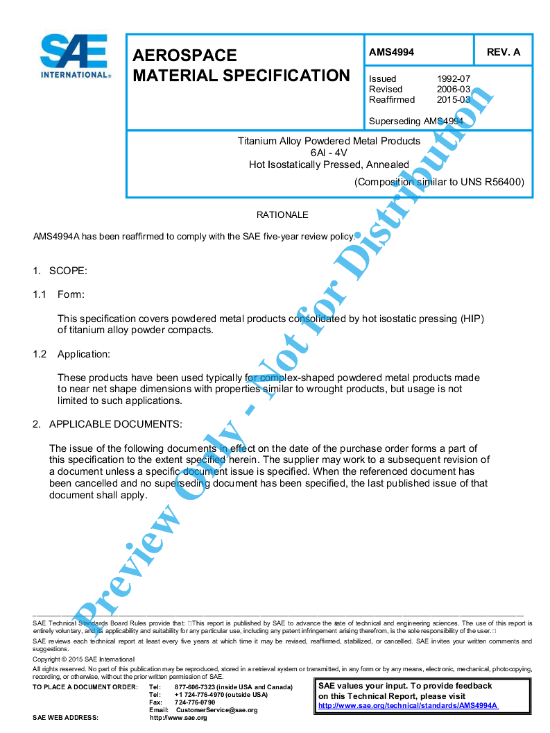 SAE AMS 4994A:2018-11-21