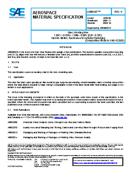Steel, Welding Wire 1.05Cr - 0.55Ni - 1.0Mo - 0.08V (0.26 - 0.32C) Vacuum Melted, Environment-Controlled Packaging