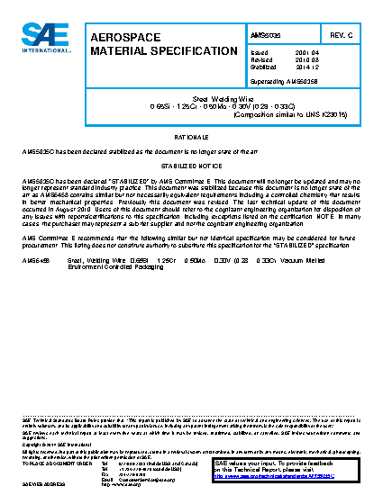 Steel, Welding Wire 0.65Si - 1.25Cr - 0.50Mo - 0.30V (0.28 - 0.33C) (Stabilized: Dec 2014)