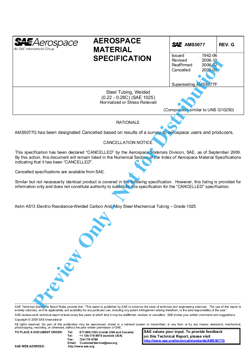 AMS5077G has been designated Cancelled based on results of a survey to aerospace users and producers.