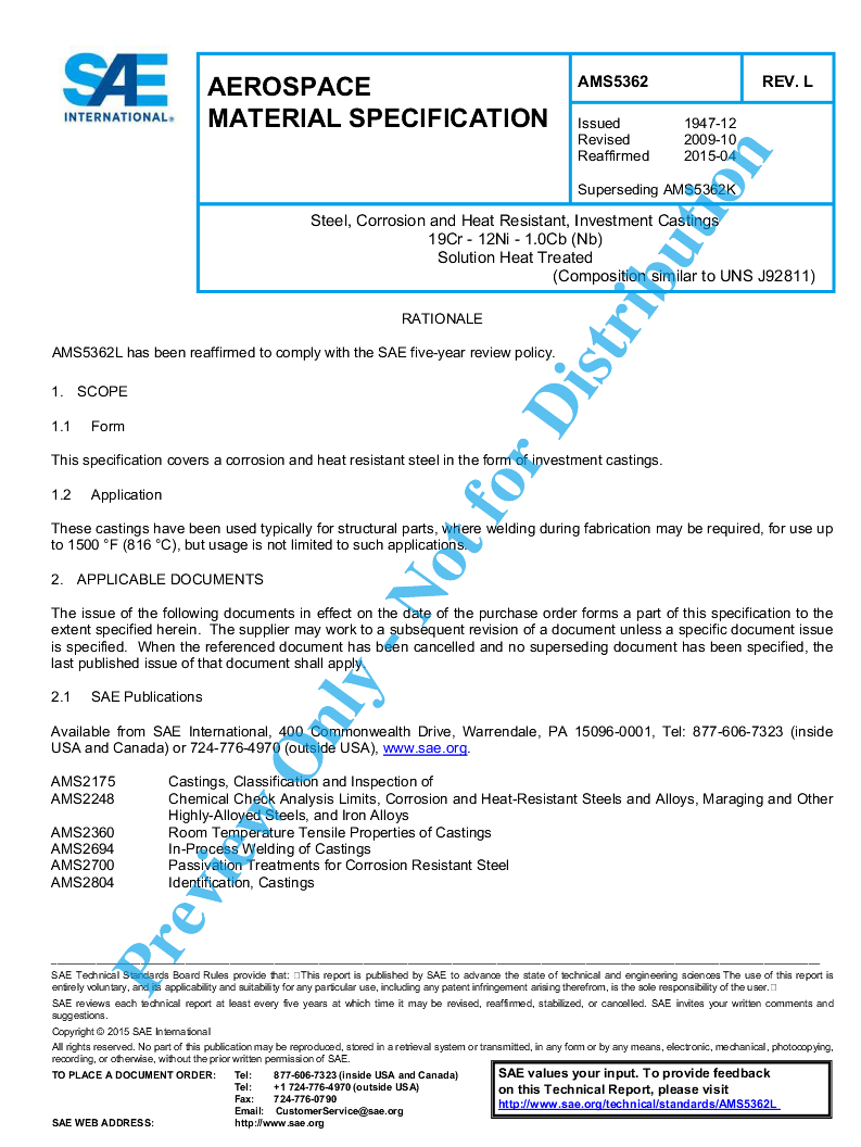 This specification covers a corrosion and heat resistant steel in the form of investment castings.