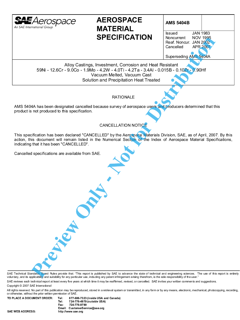 SAE AMS 5404B:2007-04-05