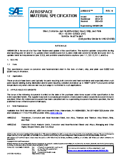 Steel, Corrosion and Heat-Resistant, Sheet, Strip, and Plate 18Cr - 10.5Ni - 0.80Cb (347) Solution Heat Treated