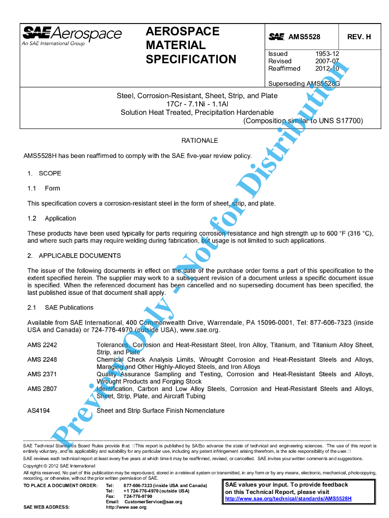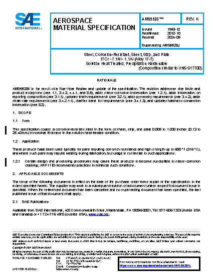 Steel, Corrosion-Resistant, Sheet, Strip, and Plate 17Cr - 7.1Ni - 1.1Al Solution Heat Treated, Precipitation Hardenable