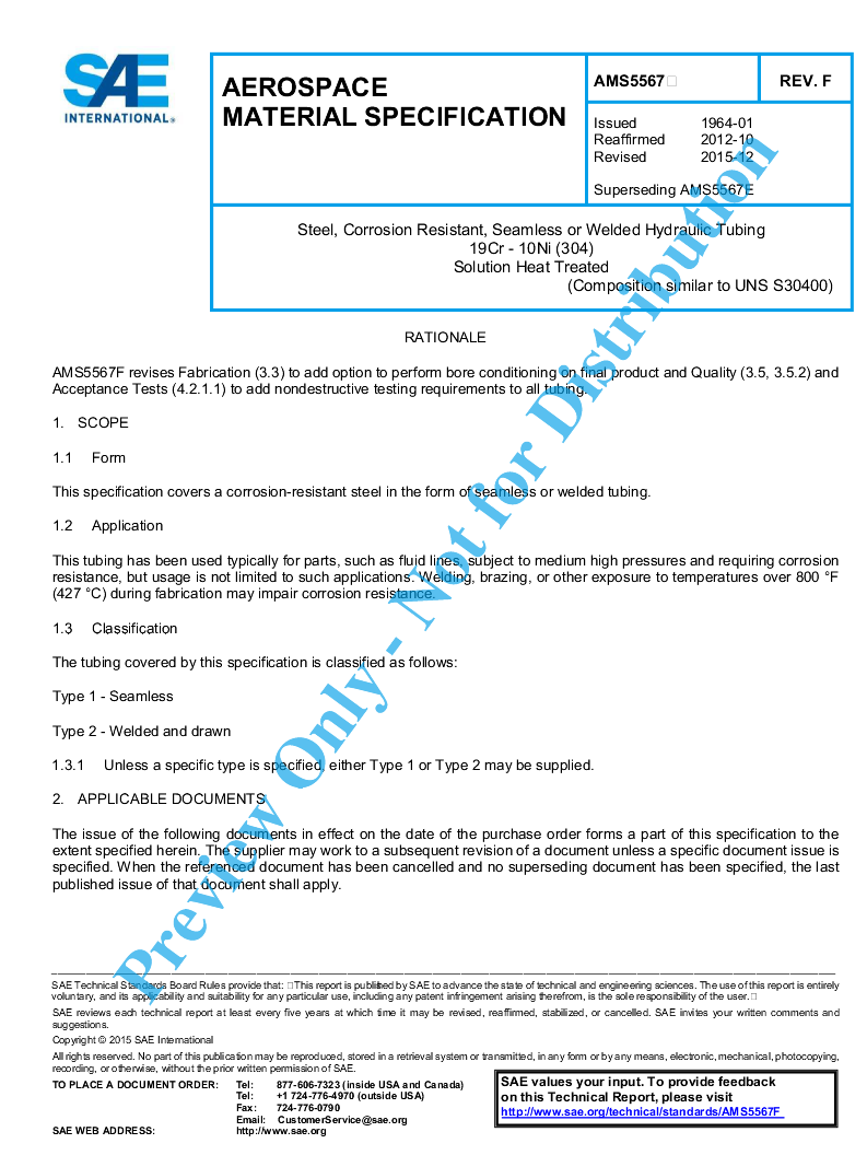 Steel, Corrosion Resistant, Seamless or Welded Hydraulic Tubing 19Cr - 10Ni (304) Solution Heat Treated