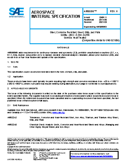 Steel, Corrosion Resistant, Sheet, Strip, and Plate 9.0Mn - 20Cr - 6.5Ni - 0.28N Solution Heat Treated
