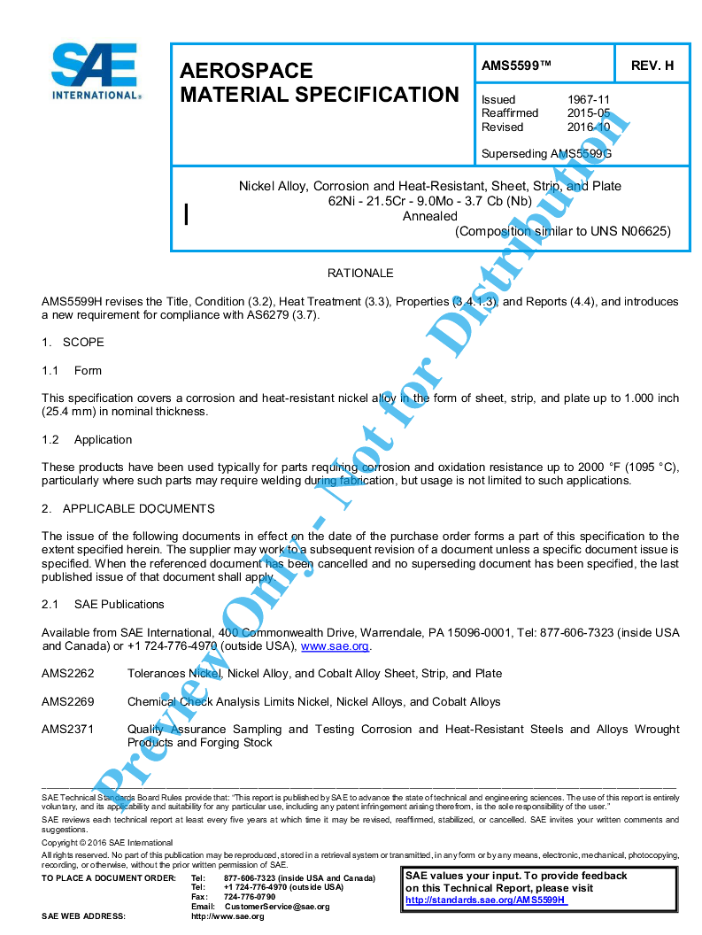 SAE AMS 5599H:2016-10-06