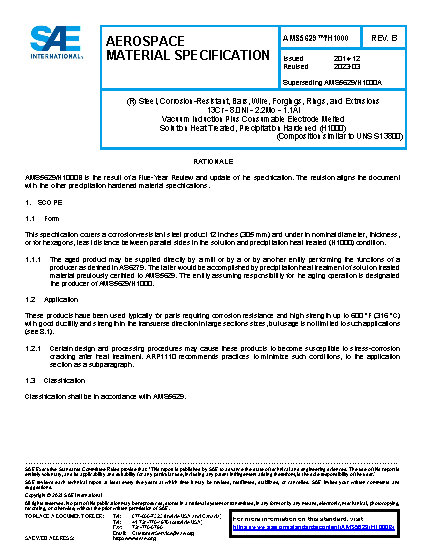 This specification covers a corrosion-resistant steel product in the solution and precipitation heat treated (H1000) condition.