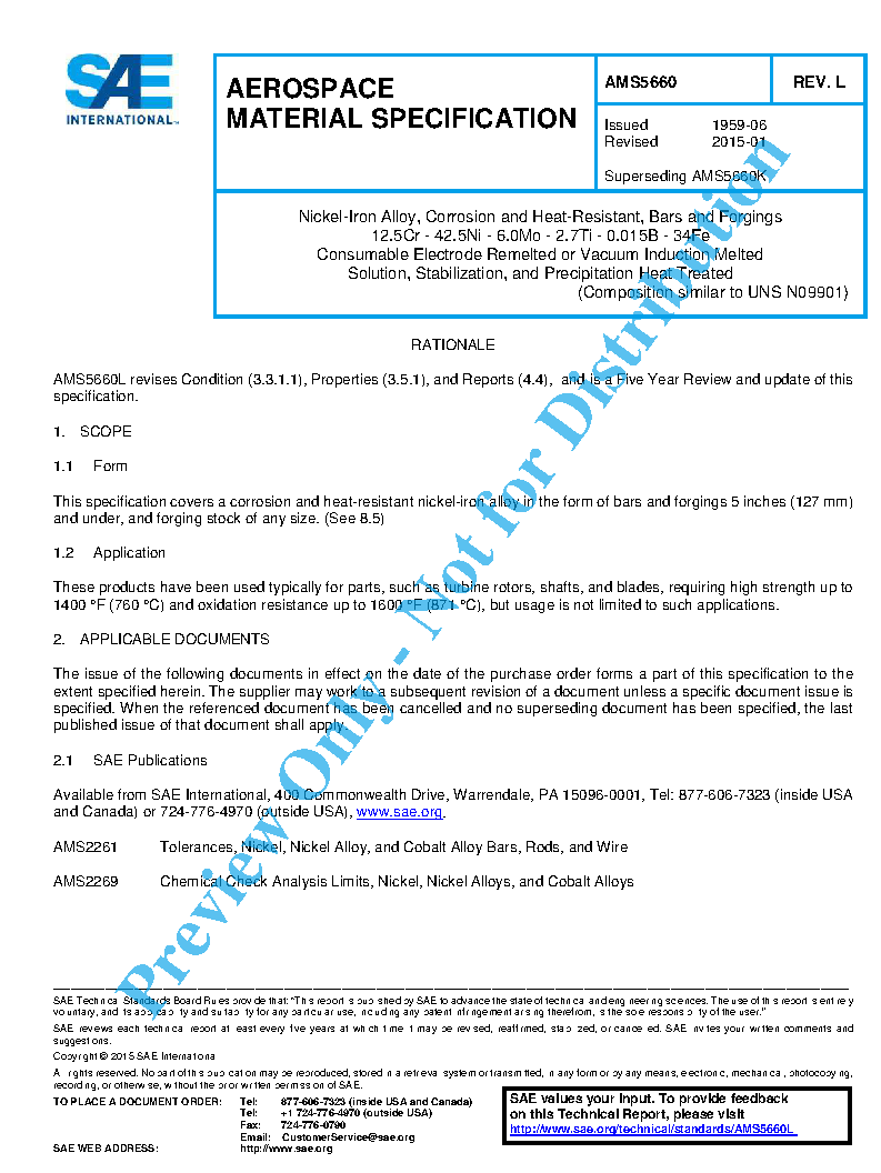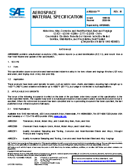 This specification covers a corrosion and heat-resistant nickel-iron alloy in the form of bars and forgings 5 inches (127 mm) and under, and forging stock of any size. (See 8.5)