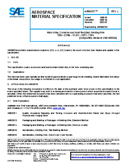 This specification covers a corrosion and heat resistant nickel alloy in the form of welding wire.