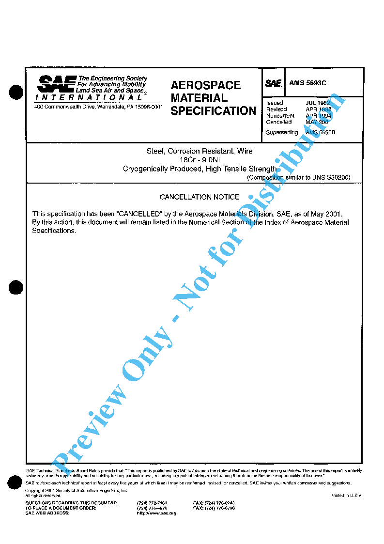 SAE AMS 5693C:2001-05-01