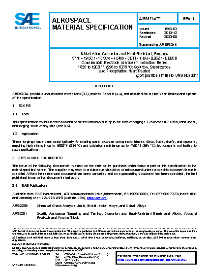 This specification covers a corrosion and heat-resistant nickel alloy in the form of forgings 3.25 inches (82.6 mm) and under, and forging stock of any size. (See 8.5).