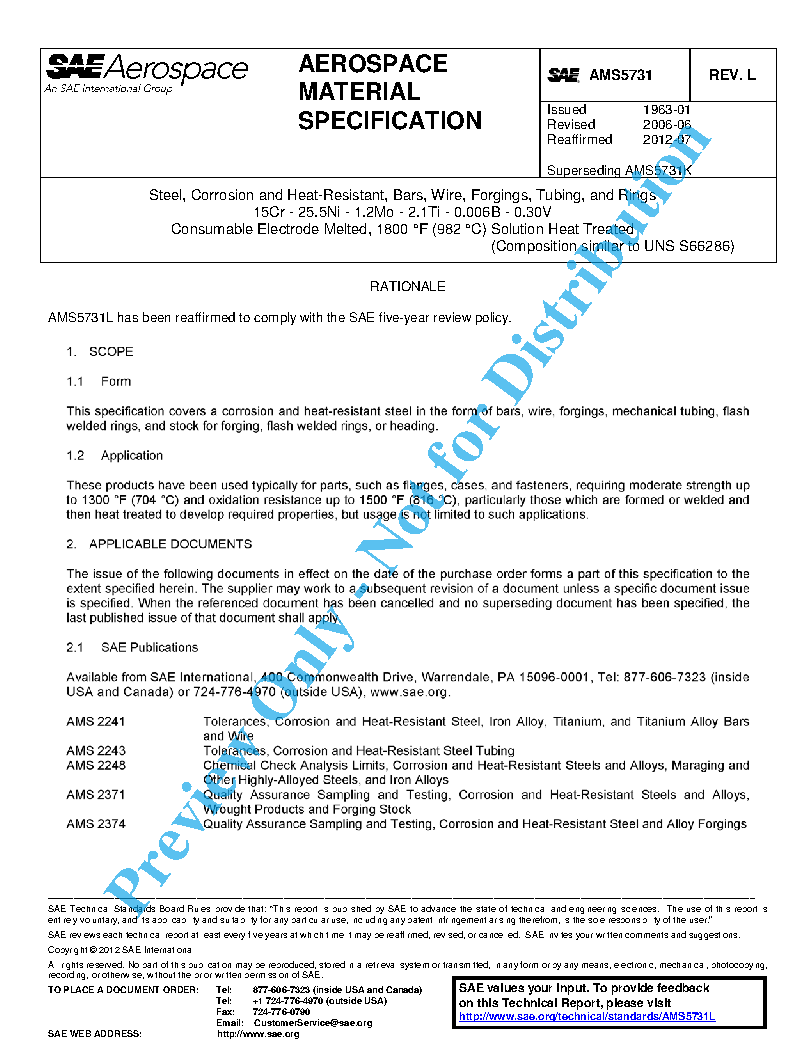 Steel, Corrosion and Heat-Resistant, Bars, Wire, Forgings, Tubing, and Rings 15Cr - 25.5Ni - 1.2Mo - 2.1Ti - 0.006B - 0.30V Consumable Electrode Melted, 1800 °F (982 °C) Solution Heat Treated